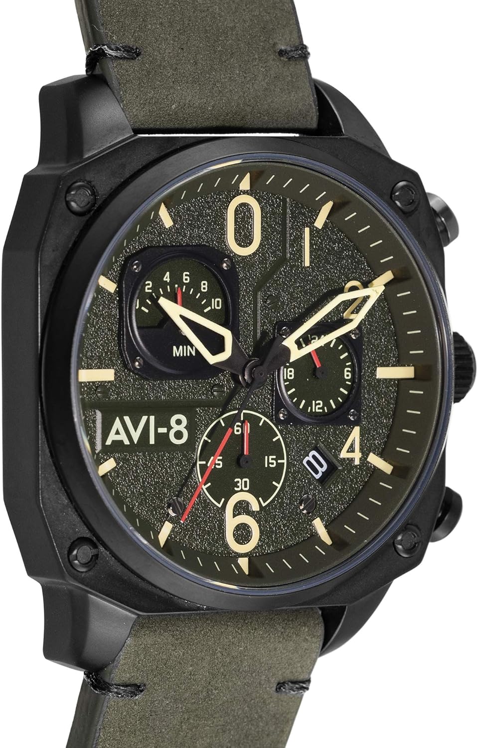 Amazon Com Avi 8 Men S Hawker Hunter Stainless Steel Japanese Quartz Leather Strap Green 21 5 Casual Watch Model Av 4052 08 Watches